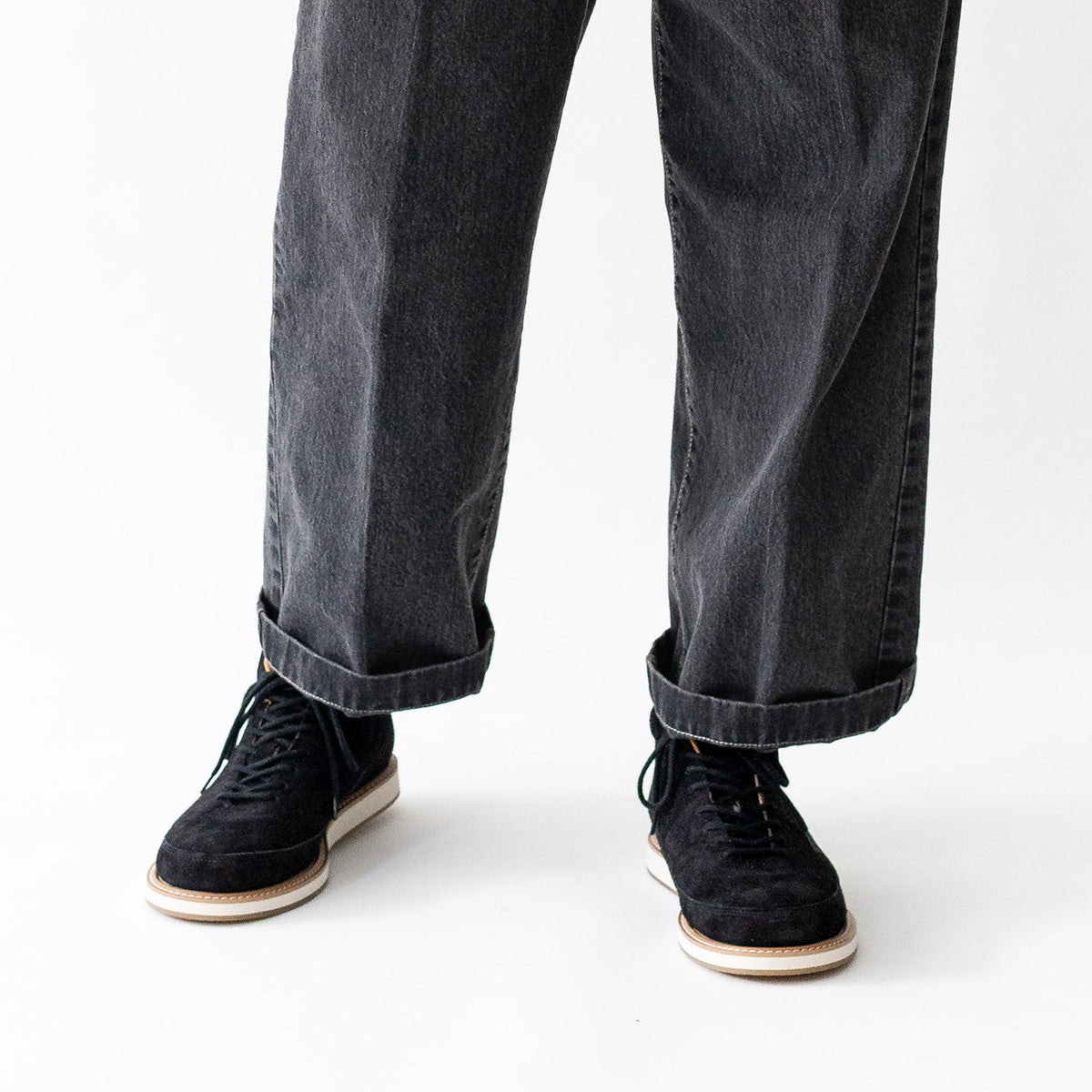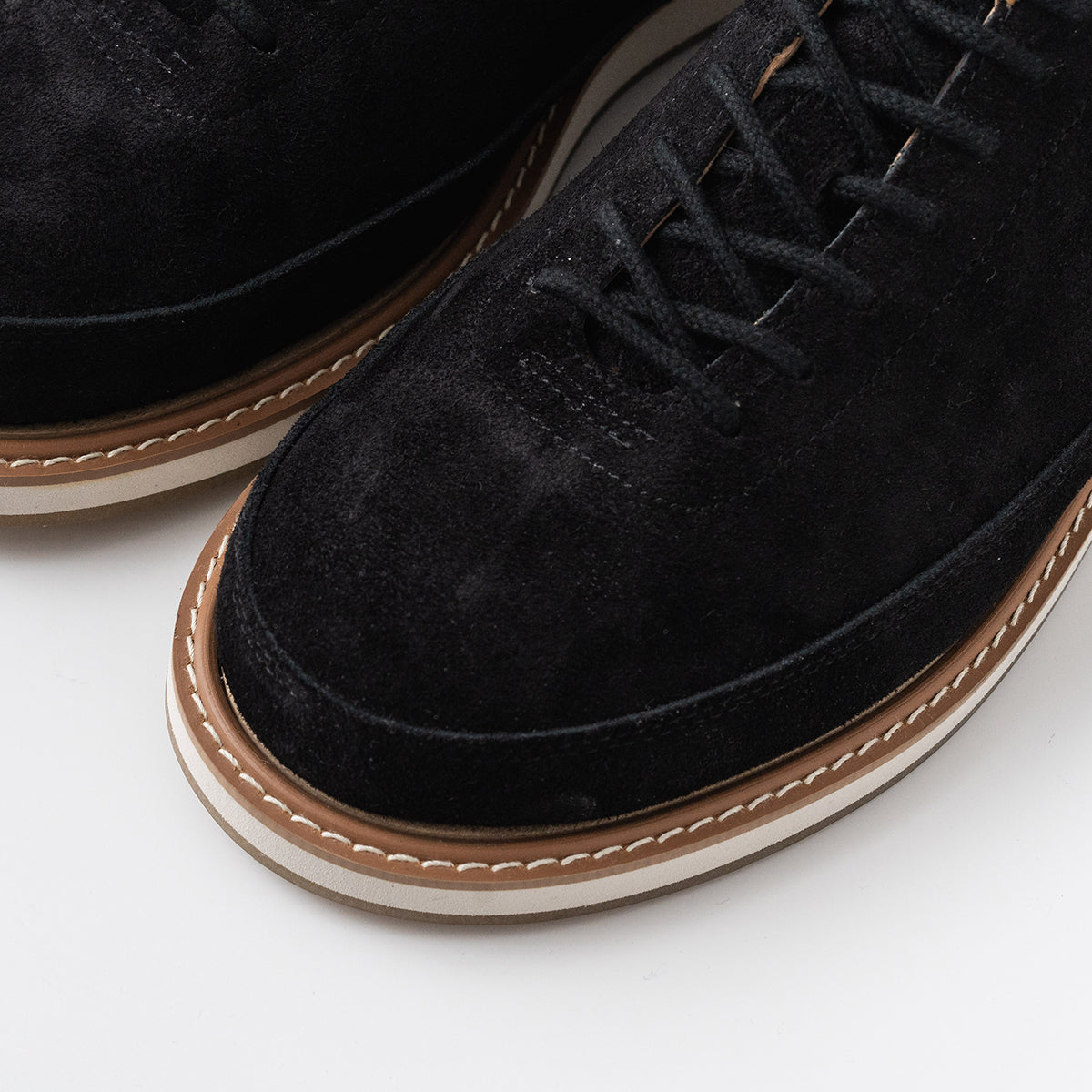 The upper design is simple and based on the motif of classic trekking shoes, while the upper material is made entirely of high-quality thick velour. The sole is equipped with an original unit sole with McKay specifications, making it a modernized model for town use.