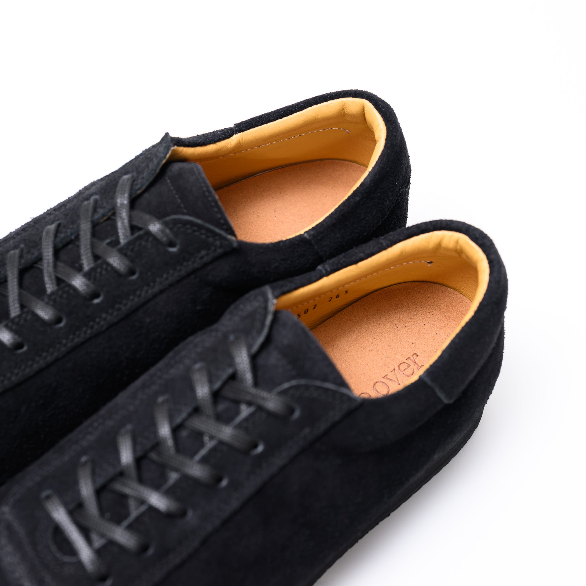 The sole is black, giving it a leather shoe-like look. The lining is camel, the shoelaces are laced, and the sole is black, giving it an adult look.